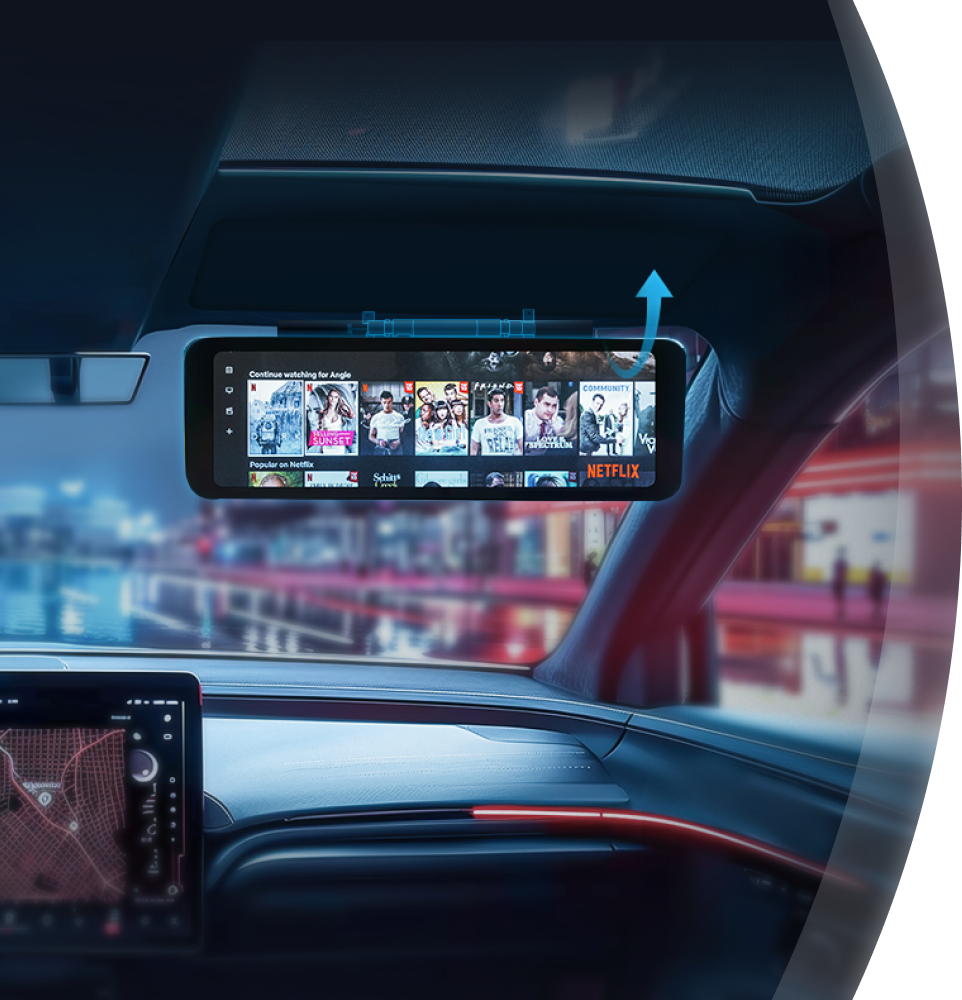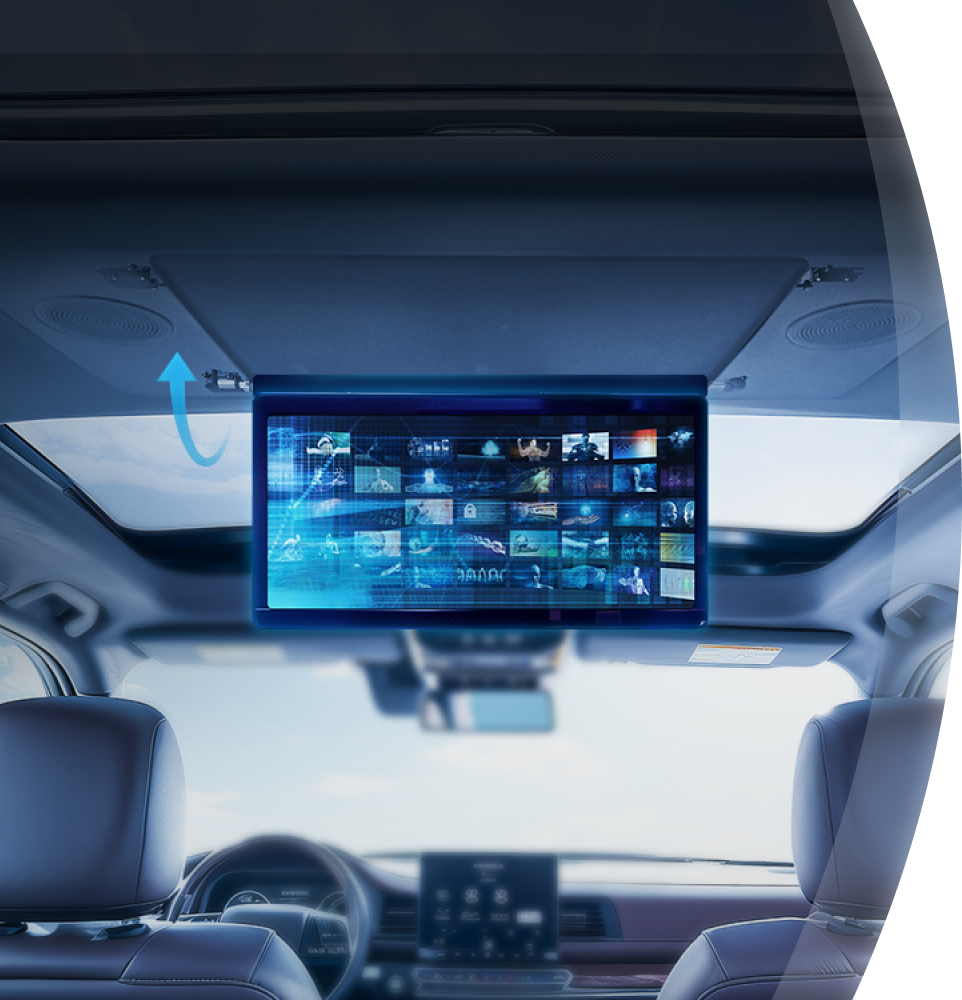 头号玩家官网登录入口后排吸顶屏,通过产品壳体带动屏幕组件旋转,旋转角度存在多个档位,使用者可调整屏幕角度,同时还具备限位功能,遇到颠簸路况也能保持稳定。